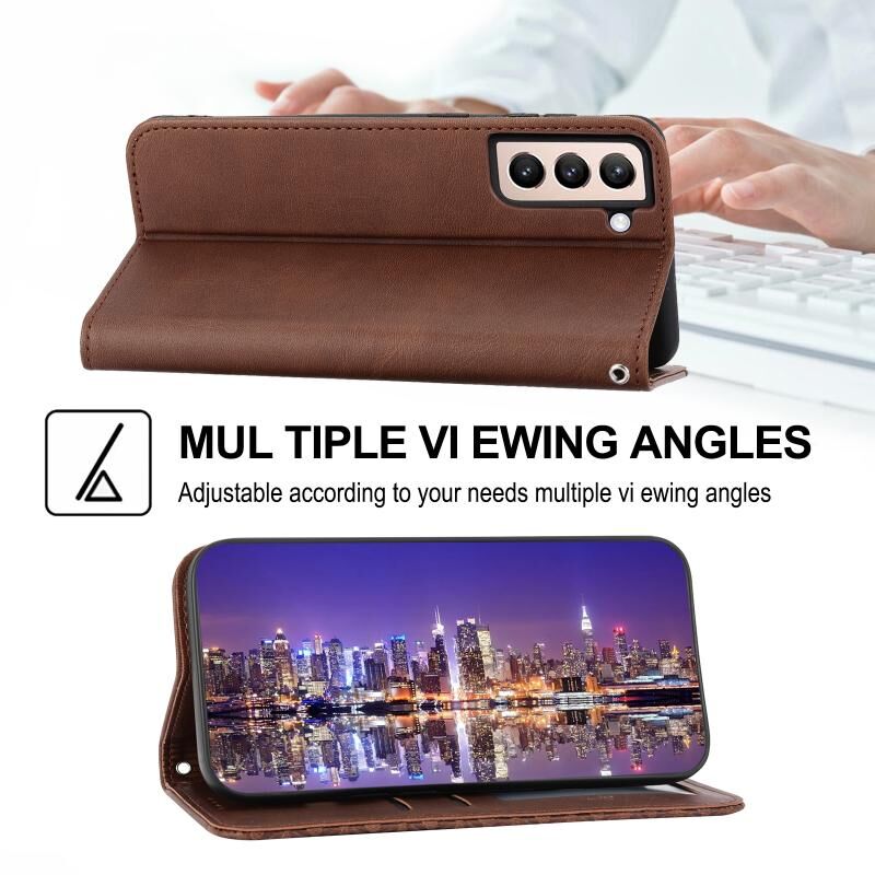 Για Samsung Galaxy S21+ 5G Cubic Grid Calf Texture μαγνητικό κλείσιμο δερμάτινη θήκη τηλεφώνου (καφέ)
