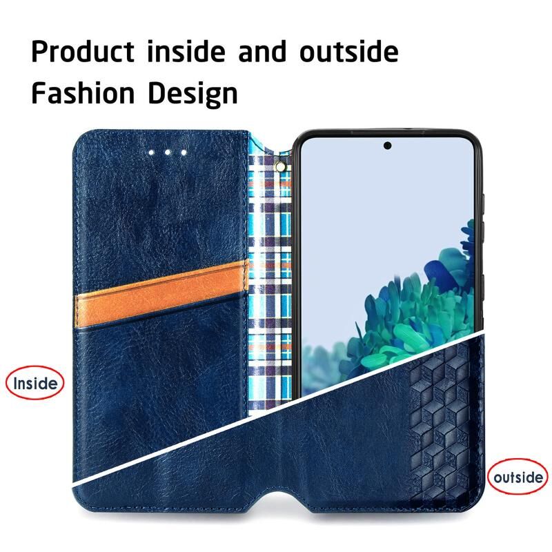Για Samsung Galaxy S21+ 5G Cubic Grid Pressed Horizontal Flip Μαγνητική PU δερμάτινη θήκη με θήκη για κάρτες & υποδοχές & πορτοφόλι (μπλε)