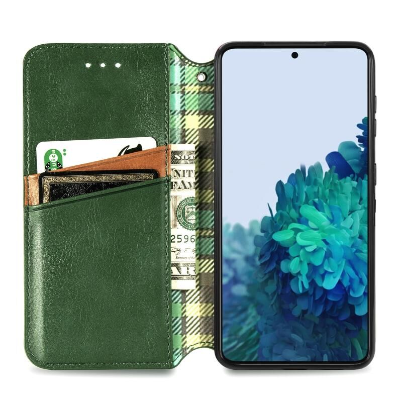 Για το Samsung Galaxy S21+ 5G Cubic Grid Pressed Horizontal Flip Μαγνητική PU δερμάτινη θήκη με θήκη για κάρτες & υποδοχές & πορτοφόλι (πράσινο)