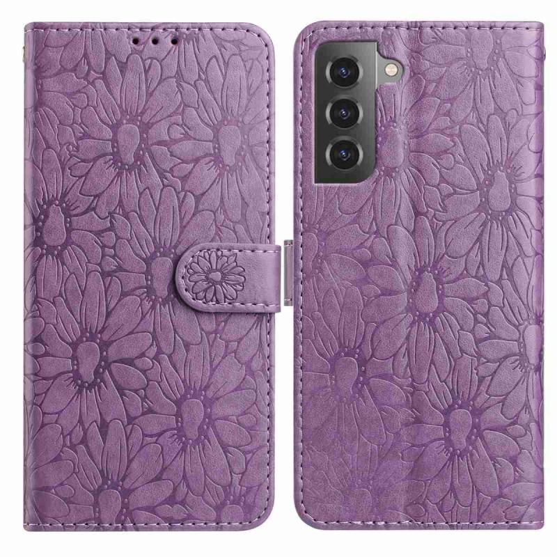 For Samsung Galaxy S21 5G Daisy Embossed Leather Phone Case(Light Purple)