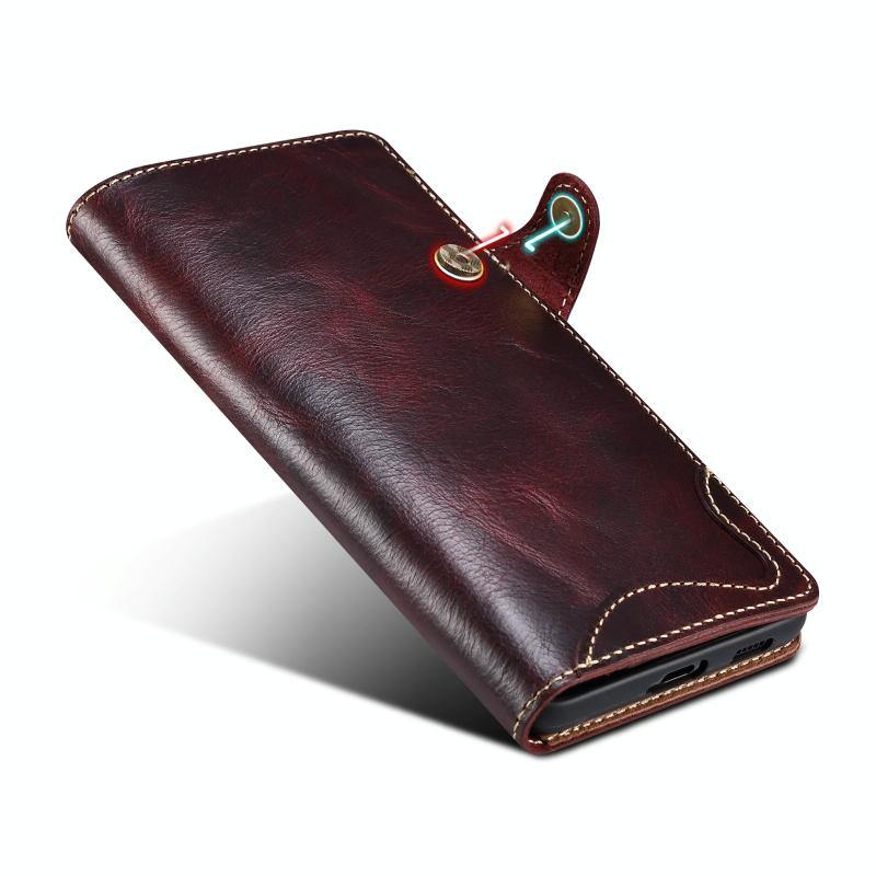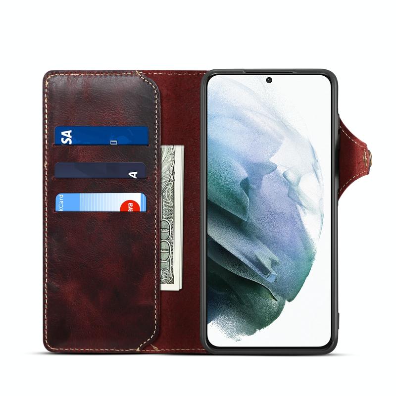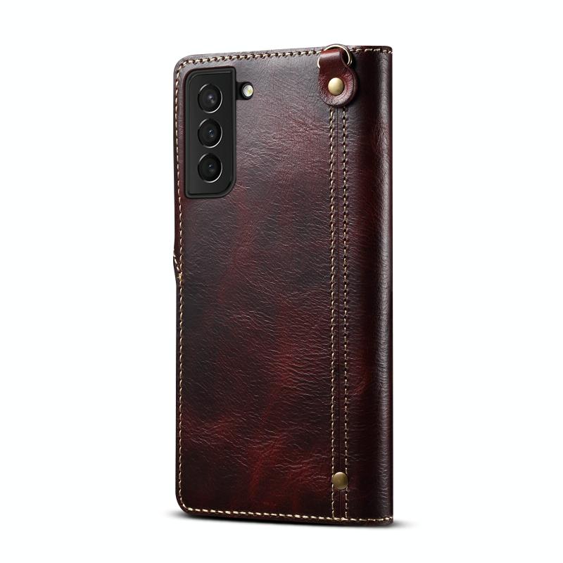 Θήκη για Samsung Galaxy S21 5G από γνήσιο δέρμα αγελάδας με κερί λαδιού Denior, με μαγνητικό κούμπωμα (Κόκκινο σκούρο) (Σκούρο κόκκινο)