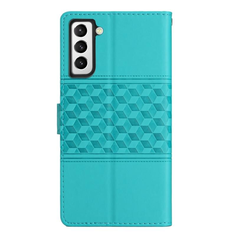 Για Samsung Galaxy S21+ 5G Diamond ανάγλυφο δέρμα αίσθηση δερμάτινη θήκη τηλεφώνου με κορδόνι (μπλε)