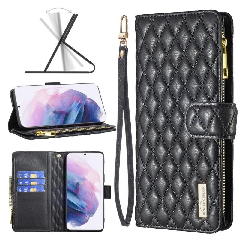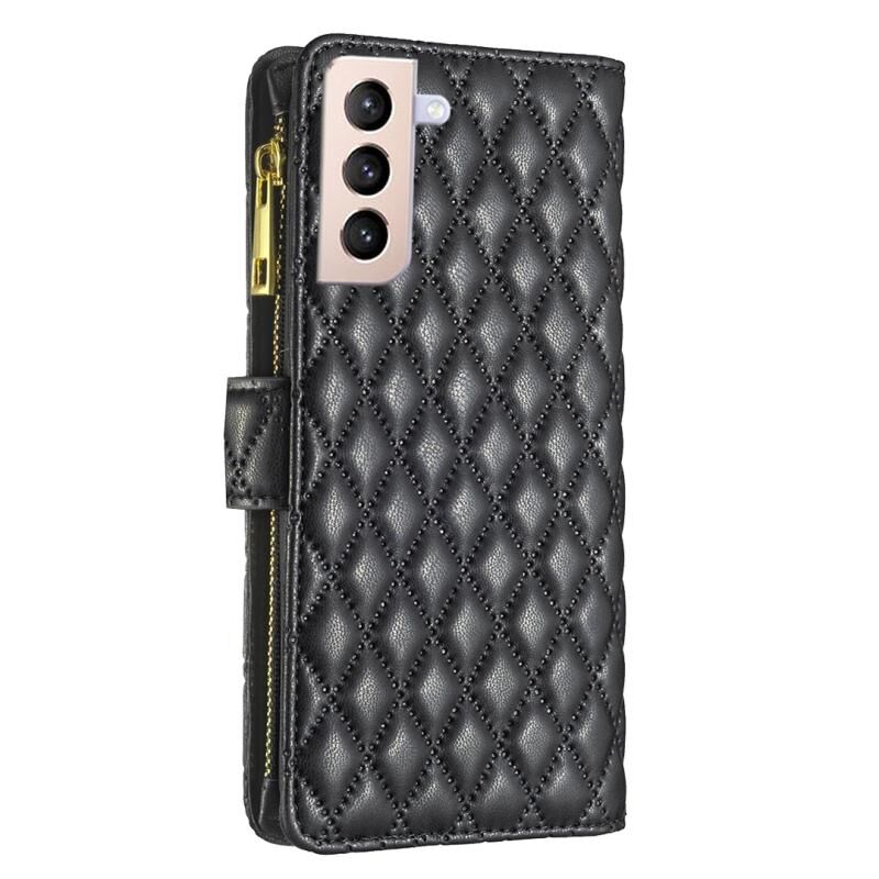 Θήκη τηλεφώνου Samsung Galaxy S21+ 5G, Δερμάτινη θήκη τύπου πορτοφολιού με φερμουάρ και σχέδιο διαμαντόπετρας (Λευκό)