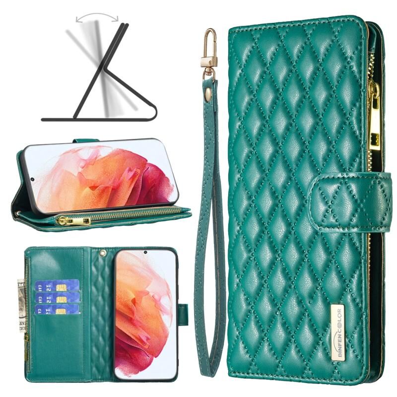 Θήκη τηλεφώνου Samsung Galaxy S21 5G, Δερμάτινη θήκη τύπου πορτοφολιού με φερμουάρ και σχέδιο διαμαντόπετρας (Λευκό)