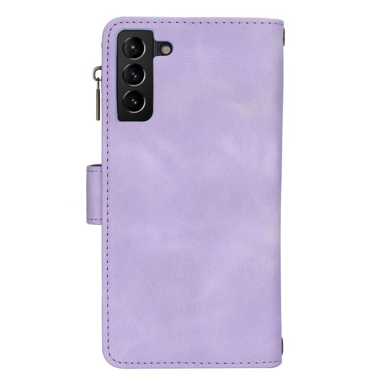 Για Samsung Galaxy S21 5G Dream 9-κάρτα φερμουάρ πορτοφόλι RFID δερμάτινη θήκη τηλεφώνου με κορδόνι (μωβ)