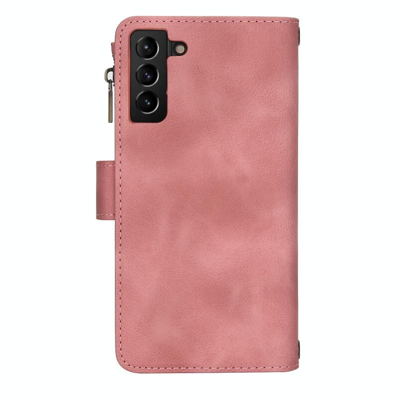 Για Samsung Galaxy S21 + 5G Dream 9-Card φερμουάρ πορτοφόλι RFID δερμάτινη θήκη τηλεφώνου με κορδόνι (Rose Gold)