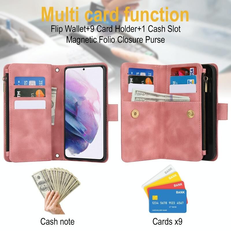 2. Λειτουργία πορτοφολιού πολλαπλών καρτών: 9 υποδοχές για κάρτες και 1 θήκη μετρητών με φερμουάρ για να αποθηκεύετε τις πιστωτικές σας κάρτες, μετρητά ή μικρά χαρτονομίσματα για τις καθημερινές σας ανάγκες.