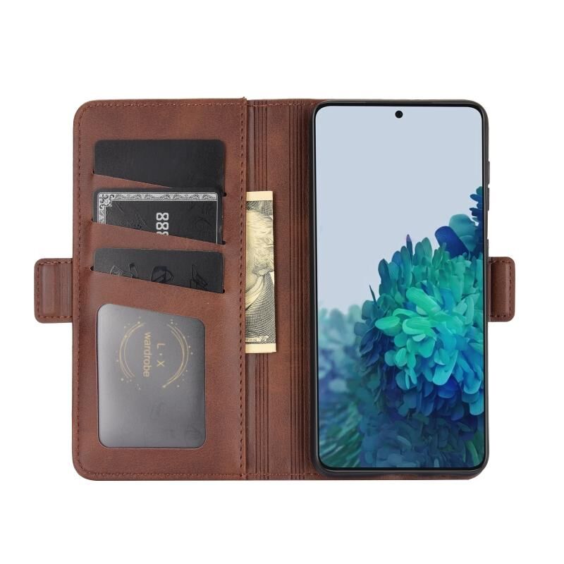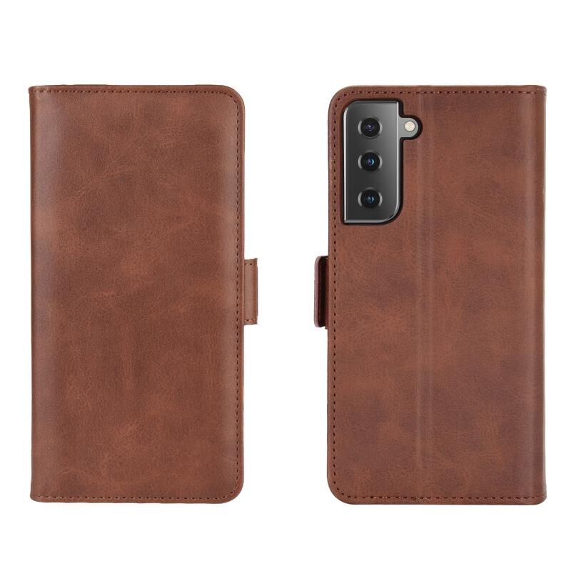 Για Samsung Galaxy S21 5G διπλής όψης μαγνητική αγκράφα οριζόντια Flip δερμάτινη θήκη με θήκη & υποδοχές για κάρτες & πορτοφόλι (καφέ)
