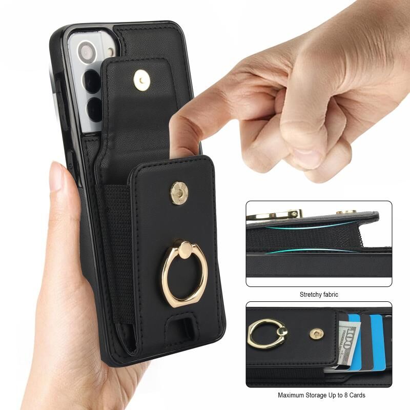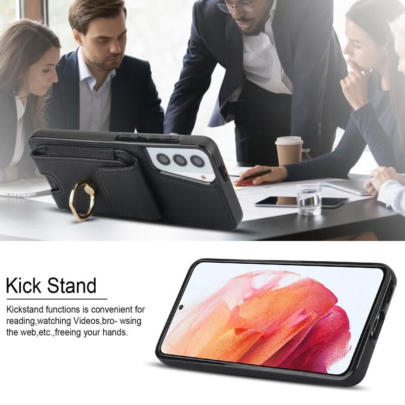 Για Samsung Galaxy S21 5G Ελαστική κάρτα τσάντα δαχτυλίδι τσάντα κάτοχος υπόθεση τηλεφώνου (μαύρο)