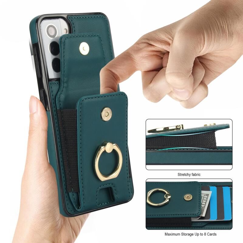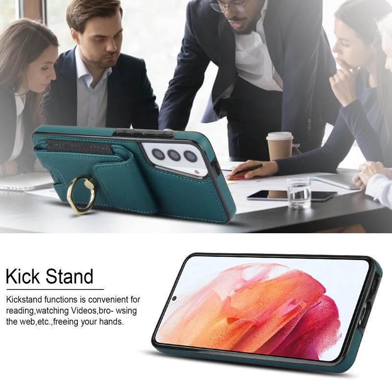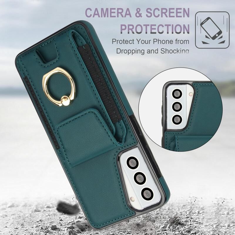 Για Samsung Galaxy S21+ 5G Ελαστική τσάντα κάρτα δαχτυλίδι κάτοχος υπόθεση τηλεφώνου (σκούρο πράσινο)