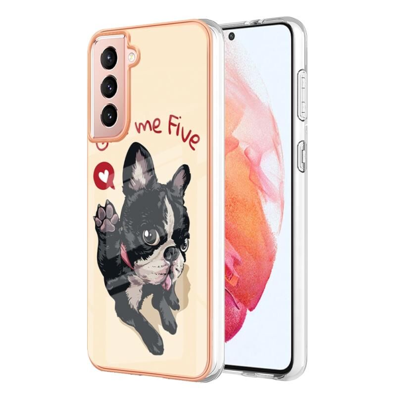 Θήκη τηλεφώνου για Samsung Galaxy S21 5G με ηλεκτρολυτική μαρμάρινη επένδυση IMD διπλής όψης (Lucky Dog)