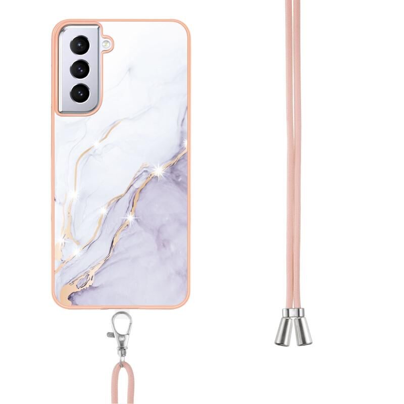 For Samsung Galaxy S21+ 5G Electroplating Marble Pattern IMD TPU Shockproof Case with Neck Lanyard(White 006)