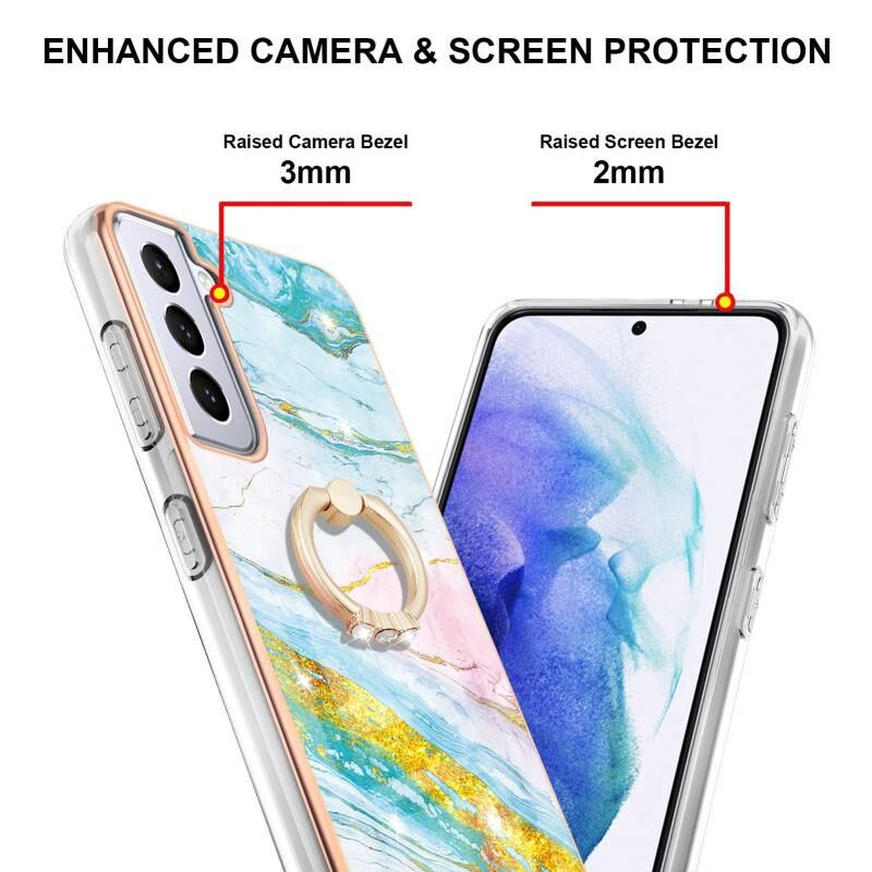For Samsung Galaxy S21+ 5G Electroplating Marble Pattern IMD TPU Shockproof Case with Ring Holder(Green 004)
