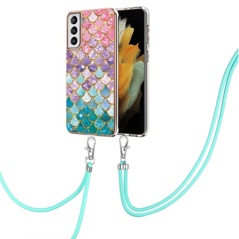 Θήκη προστασίας για Samsung Galaxy S21+ 5G με σχέδιο επιμετάλλωσης IMD TPU, ανθεκτική σε κρούσεις, με κορδόνι λαιμού (Πολύχρωμες Λέπια).