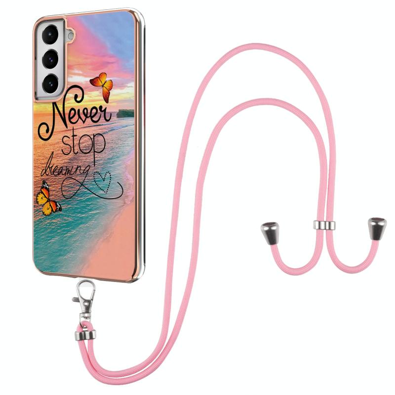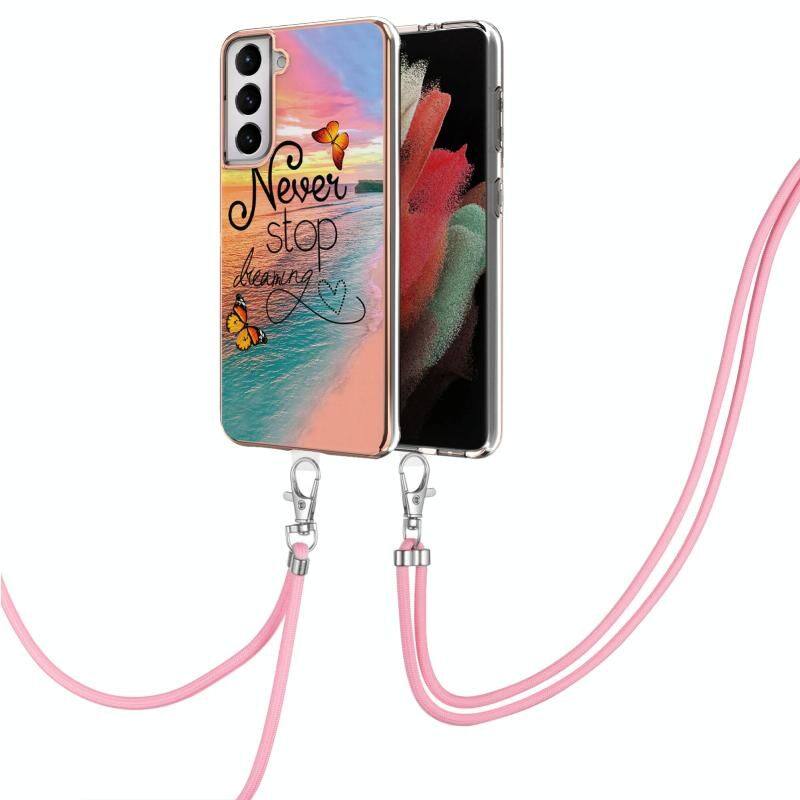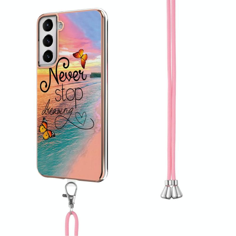For Samsung Galaxy S21 5G Electroplating Pattern IMD TPU Shockproof Case with Neck Lanyard(Dream Chasing Butterfly)