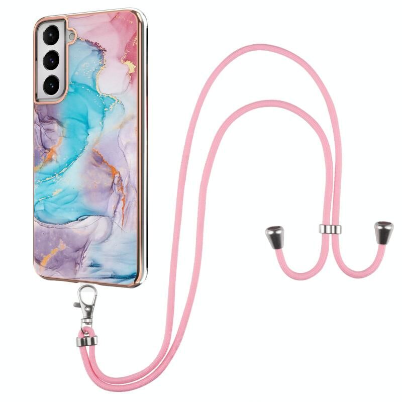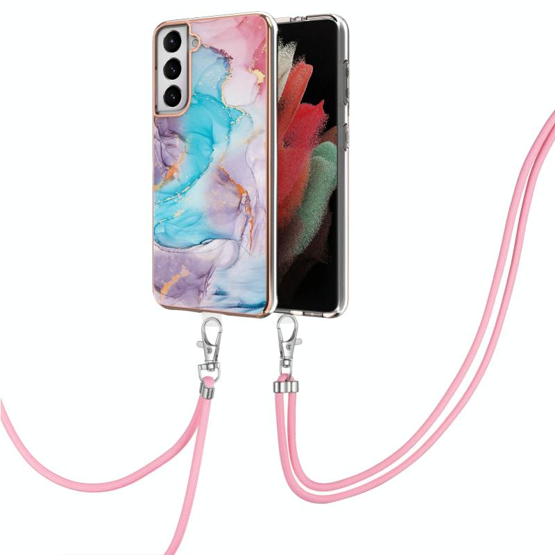 For Samsung Galaxy S21 5G Electroplating Pattern IMD TPU Shockproof Case with Neck Lanyard(Milky Way Blue Marble)