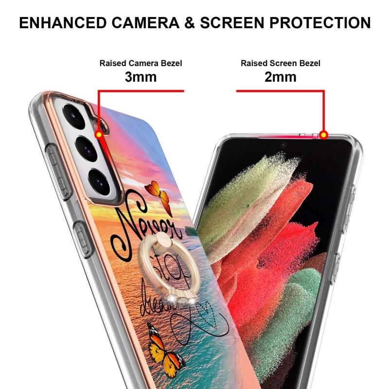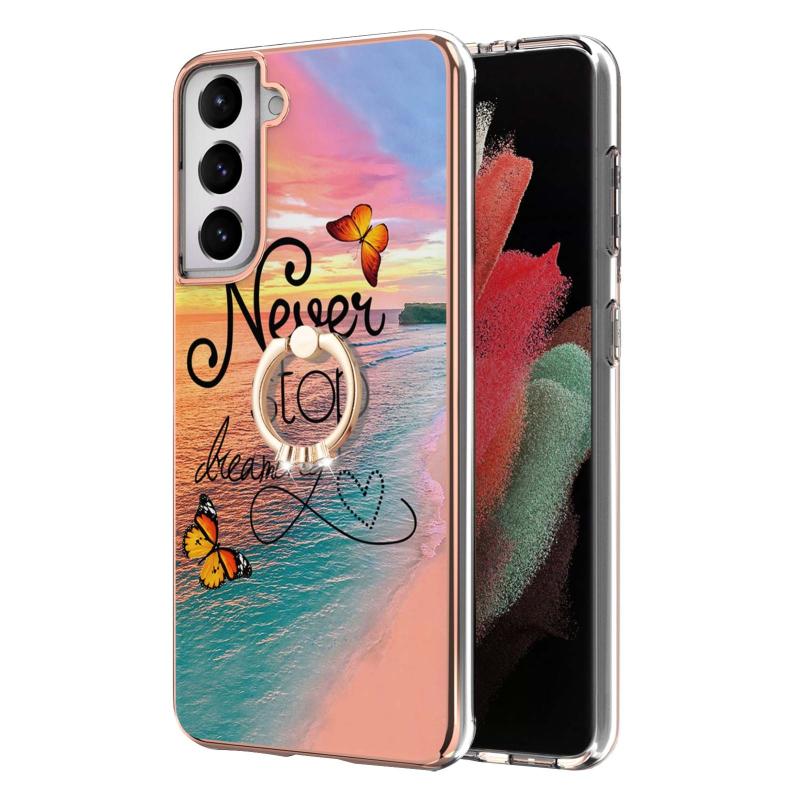 For Samsung Galaxy S21 5G Electroplating Pattern IMD TPU Shockproof Case with Rhinestone Ring Holder(Dream Chasing Butterfly)