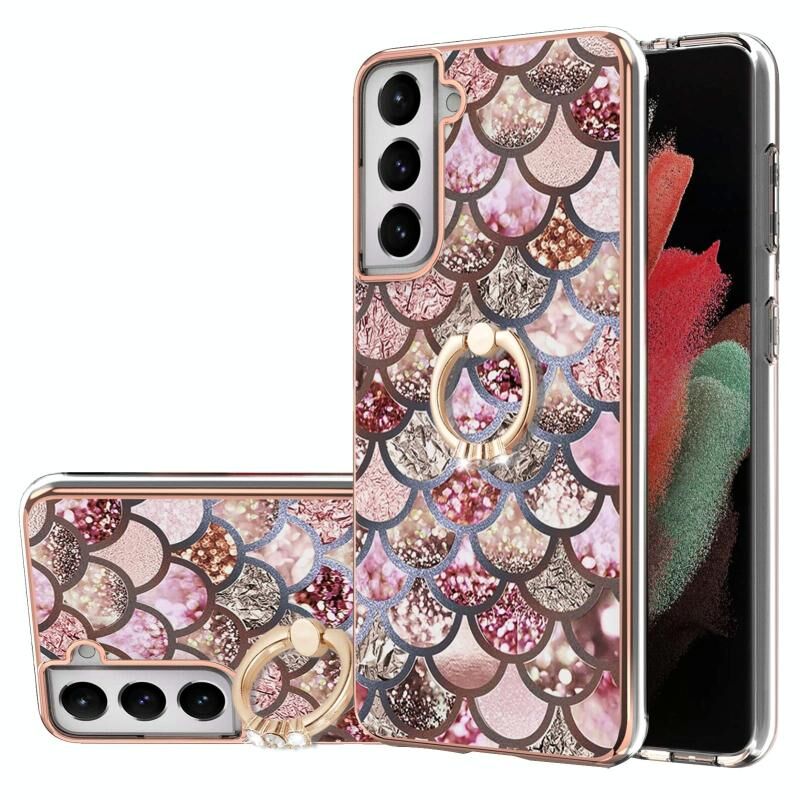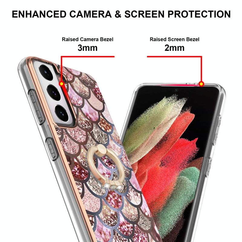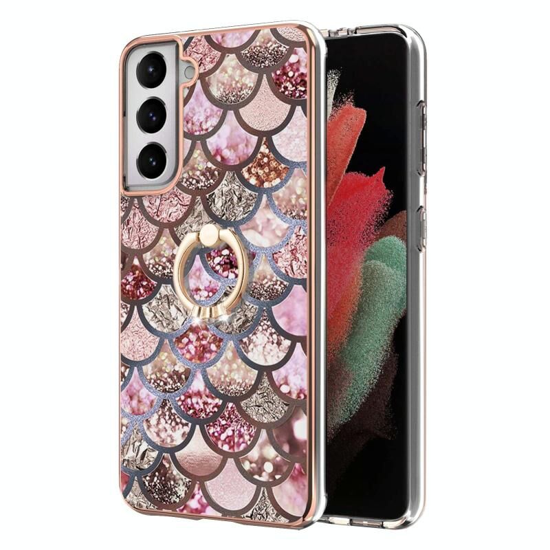 For Samsung Galaxy S21 5G Electroplating Pattern IMD TPU Shockproof Case with Rhinestone Ring Holder(Pink Scales)