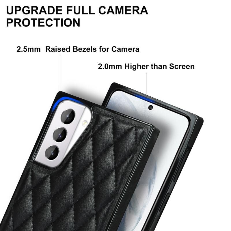 Για Samsung Galaxy S21+ 5G Κομψό ρομβοειδές μοτίβο Microfiber δέρμα +TPU Αδιάβροχη θήκη με σταυρό λουράκι αλυσίδα (Μαύρο)