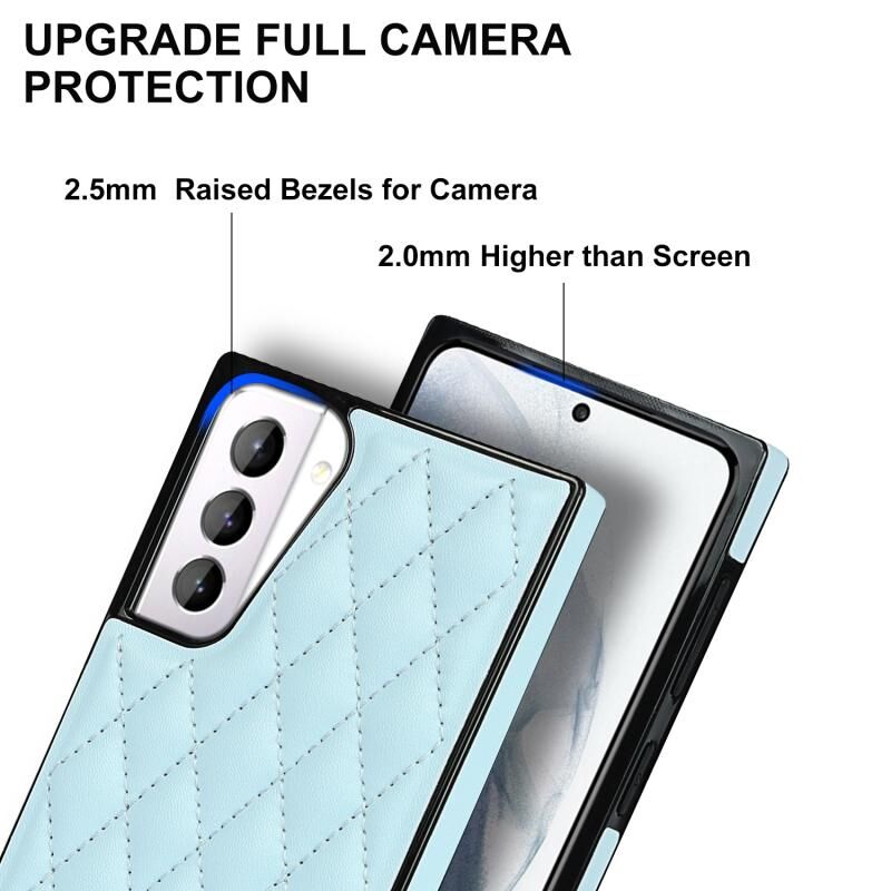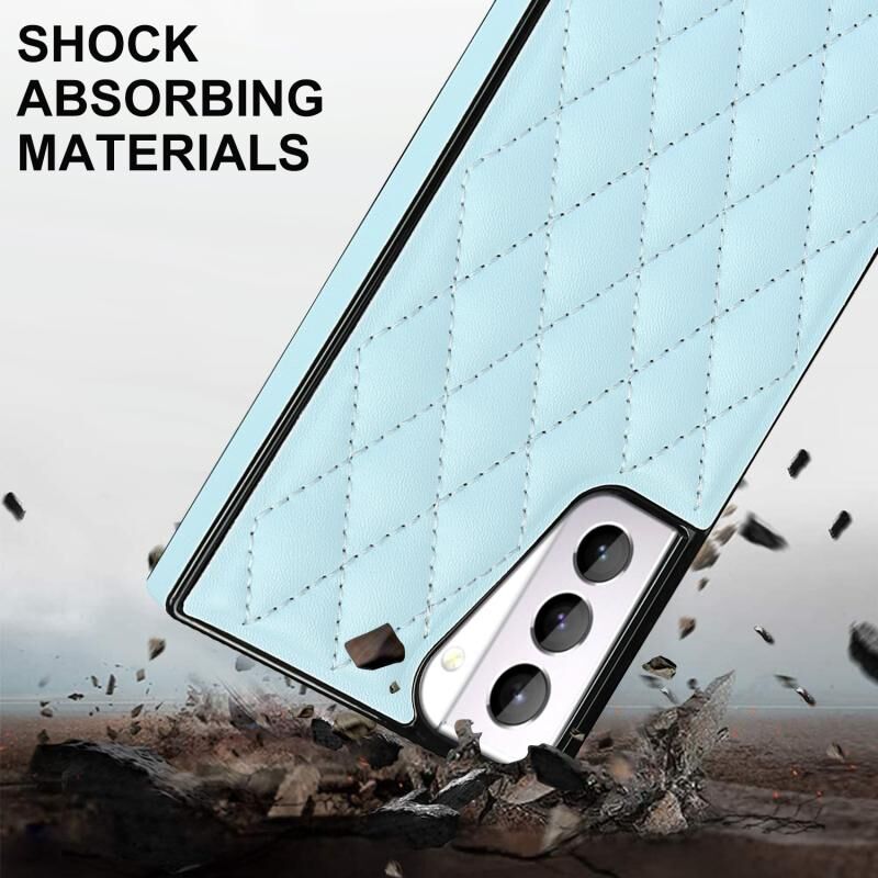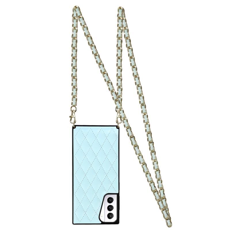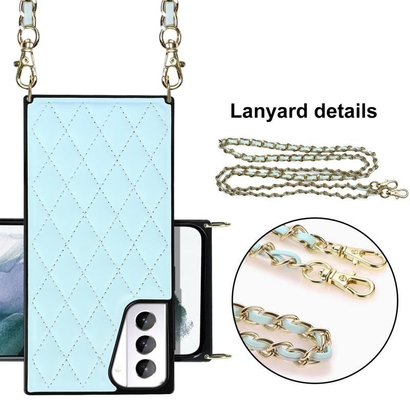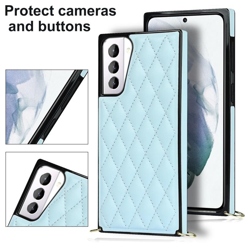 Για Samsung Galaxy S21+ 5G Κομψό ρομβοειδές μοτίβο Microfiber δέρμα +TPU Αδιάβροχη θήκη με αλυσίδα λουράκι σταυρού (μπλε)
