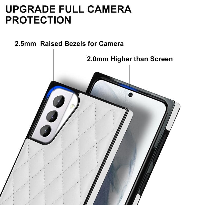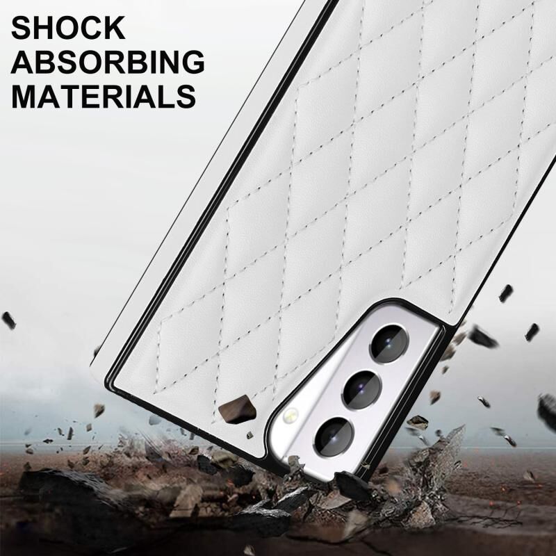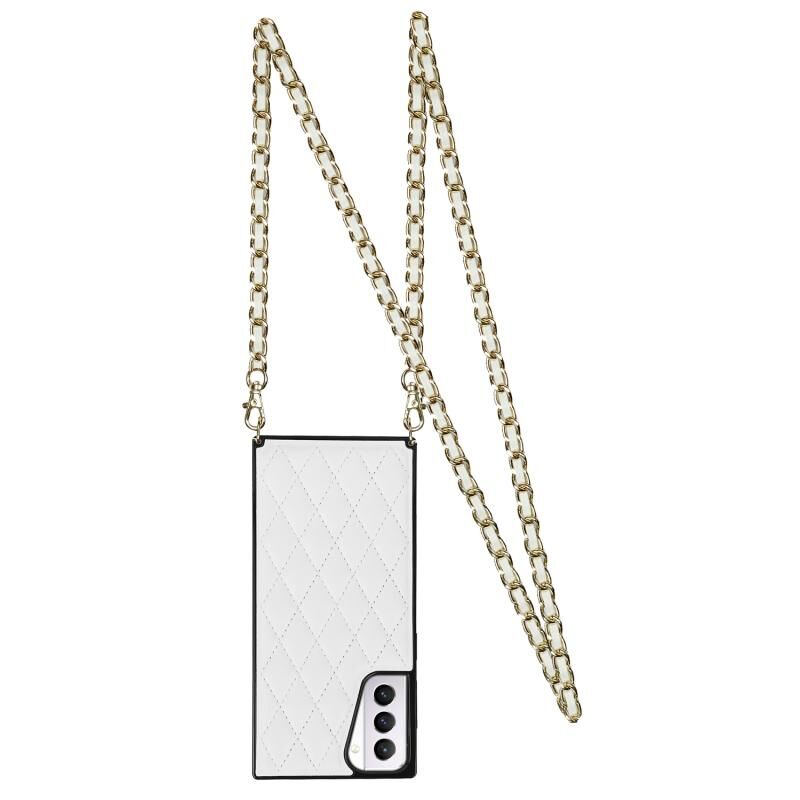 Για Samsung Galaxy S21+ 5G Κομψό ρομβοειδές μοτίβο Microfiber δέρμα +TPU Αδιάβροχη θήκη με αλυσίδα λουράκι σταυρού (λευκό)