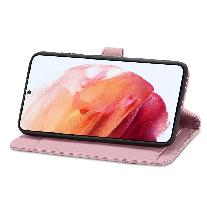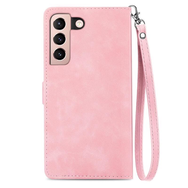 Για Samsung Galaxy S21 5G ανάγλυφο λουλούδι Shockproof δέρμα τηλέφωνο υπόθεση (ροζ)