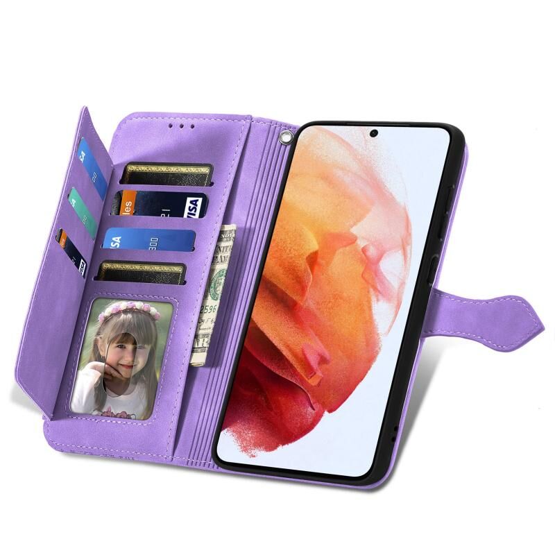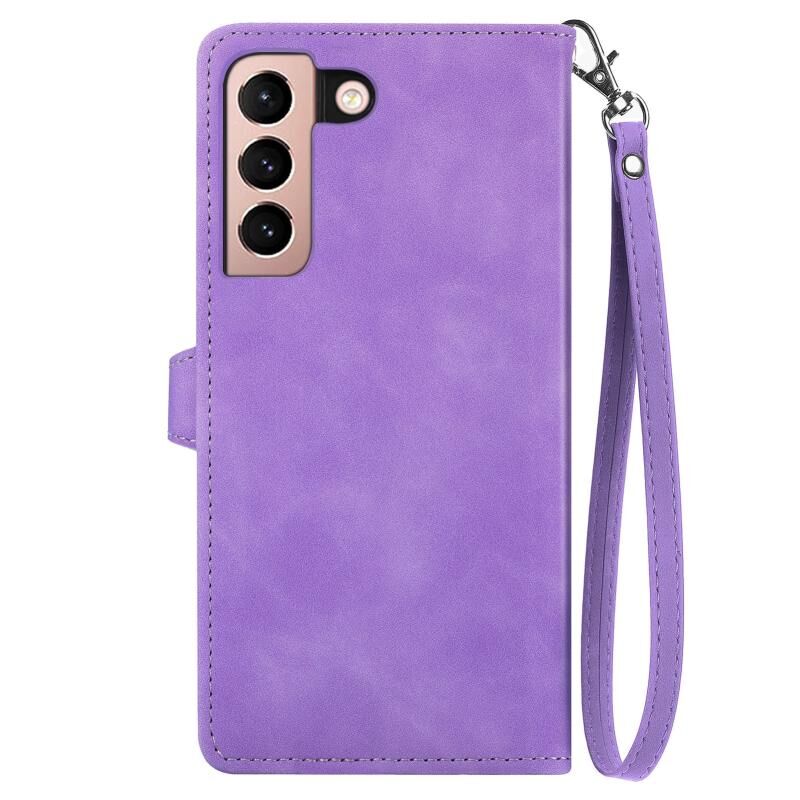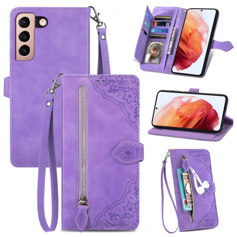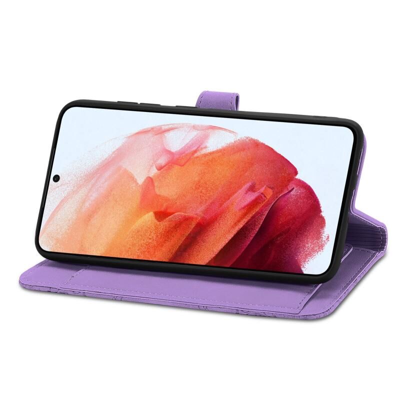 Για Samsung Galaxy S21 5G ανάγλυφο λουλούδι Shockproof δέρμα τηλέφωνο υπόθεση (μωβ)