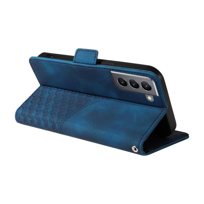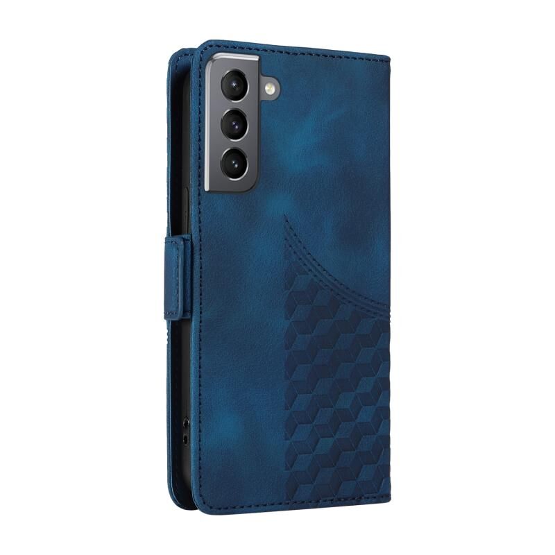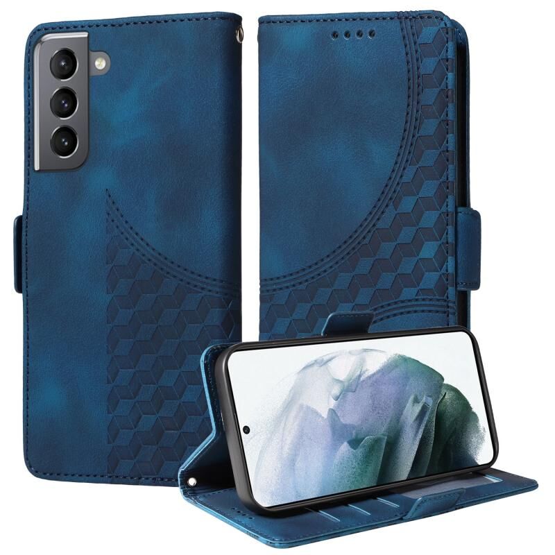 Για Samsung Galaxy S21 5G ανάγλυφο ρόμβος αστερόεσσα δερμάτινη θήκη τηλεφώνου (μπλε)