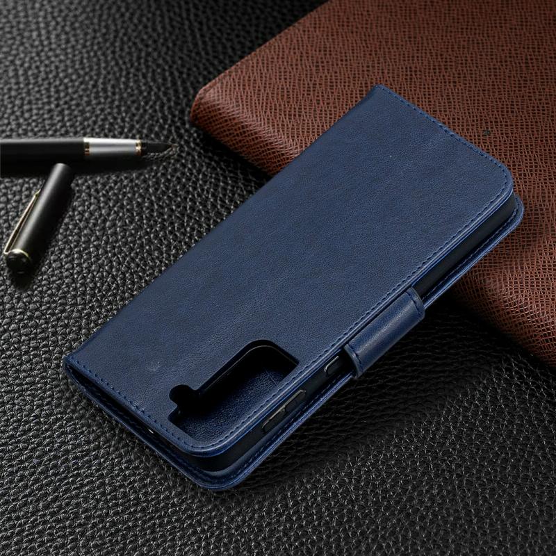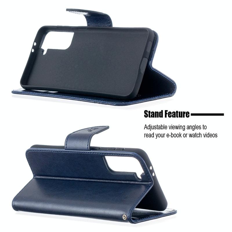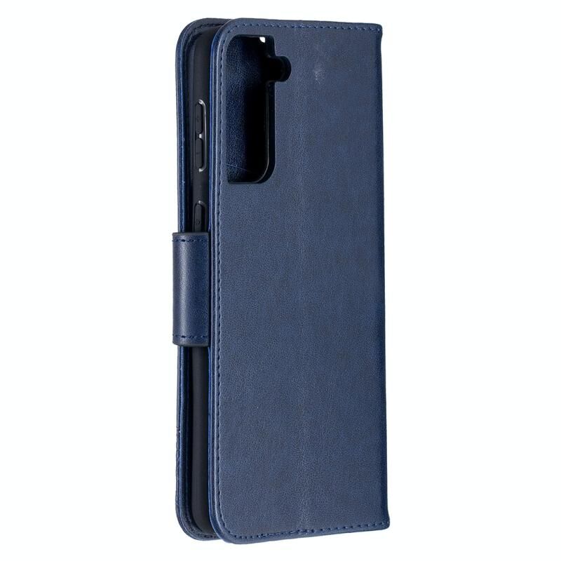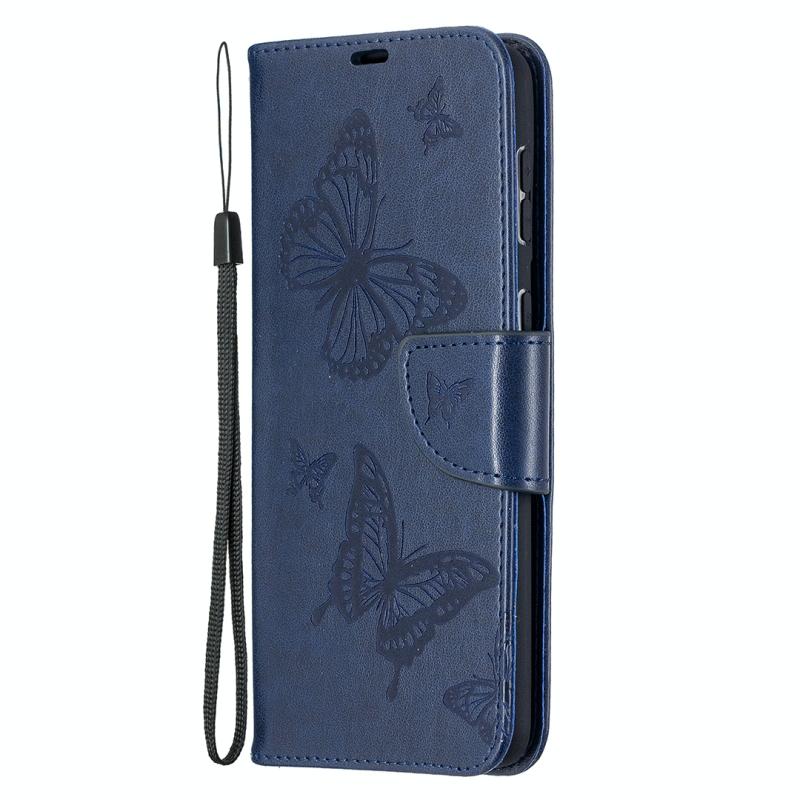 For Samsung Galaxy S21+ 5G Embossing Two Butterflies Pattern Horizontal Flip PU Leather Case with Holder & Card Slot & Wallet & Lanyard(Blue)
