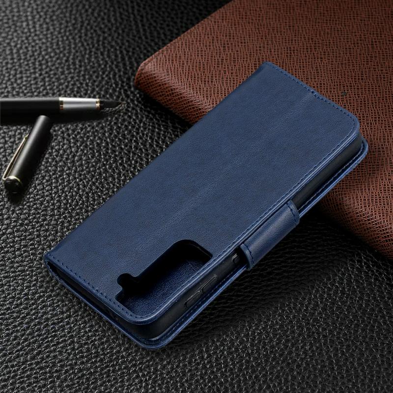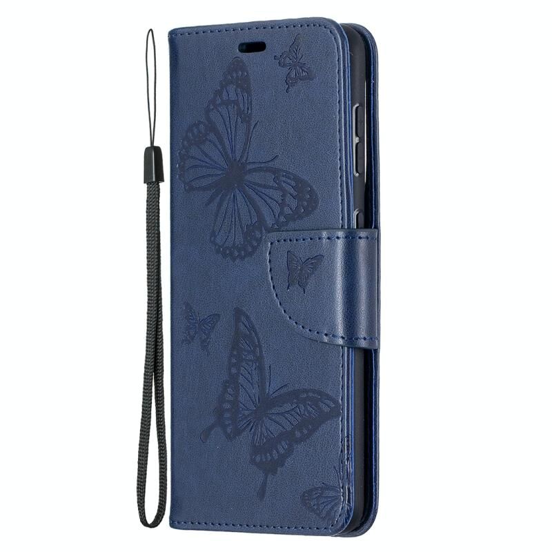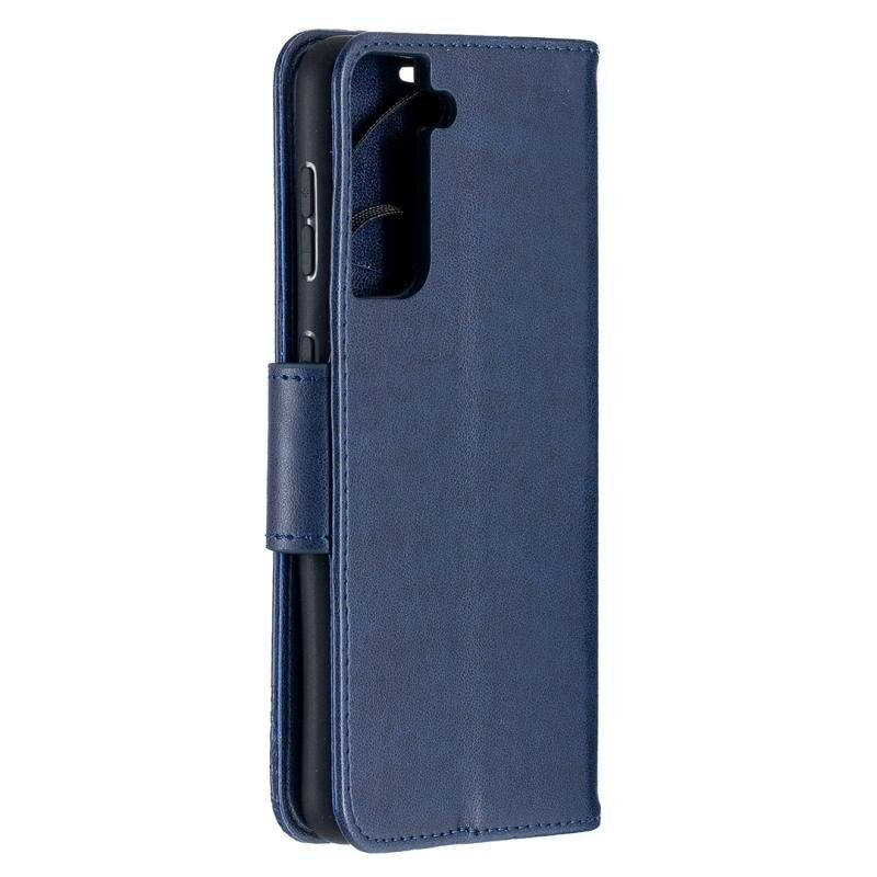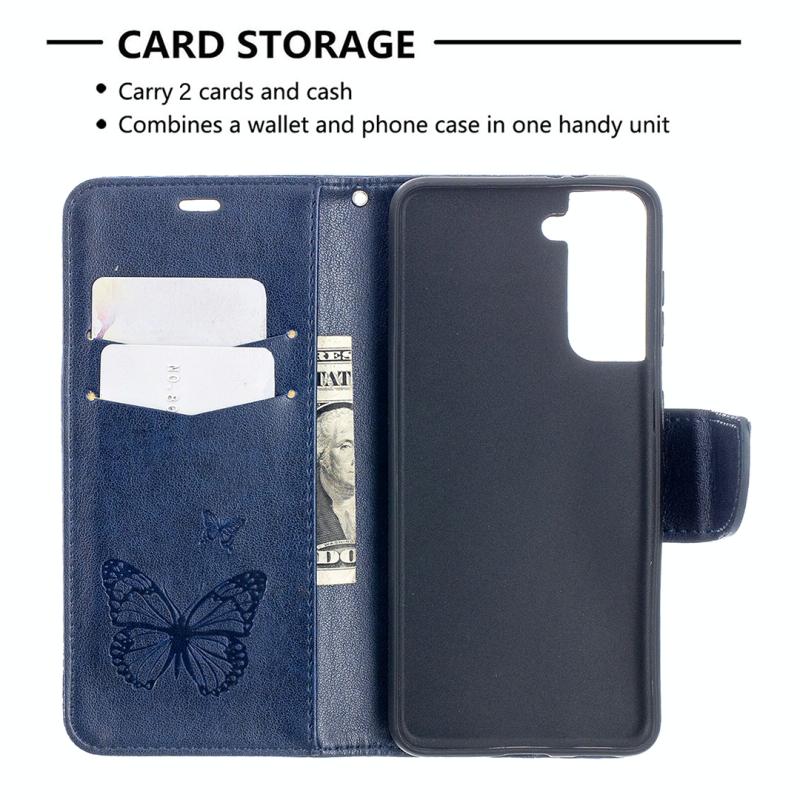 For Samsung Galaxy S21 5G Embossing Two Butterflies Pattern Horizontal Flip PU Leather Case with Holder & Card Slot & Wallet & Lanyard(Blue)