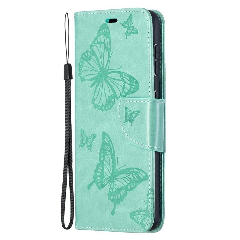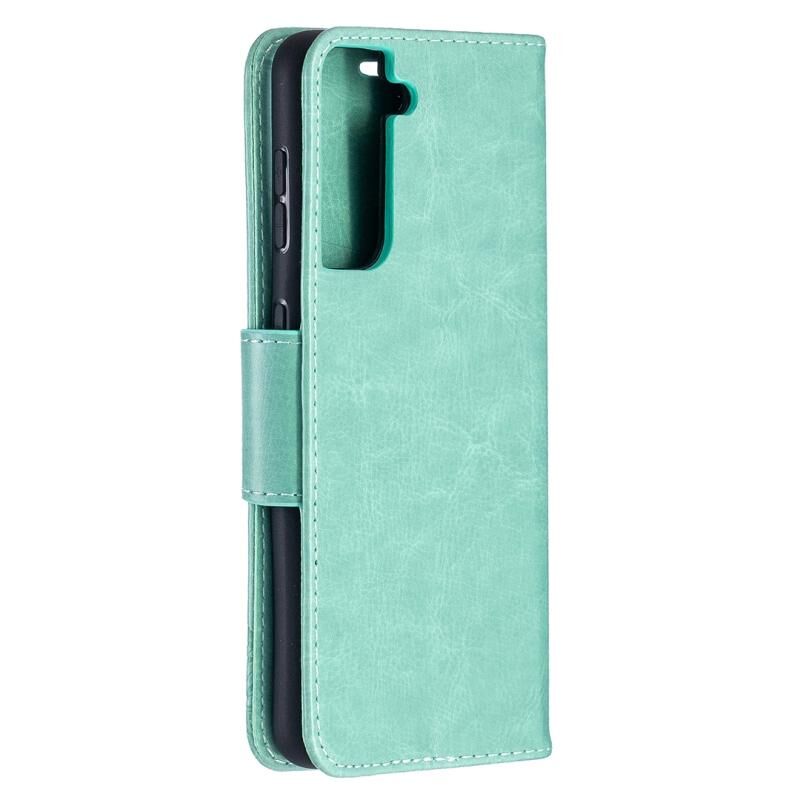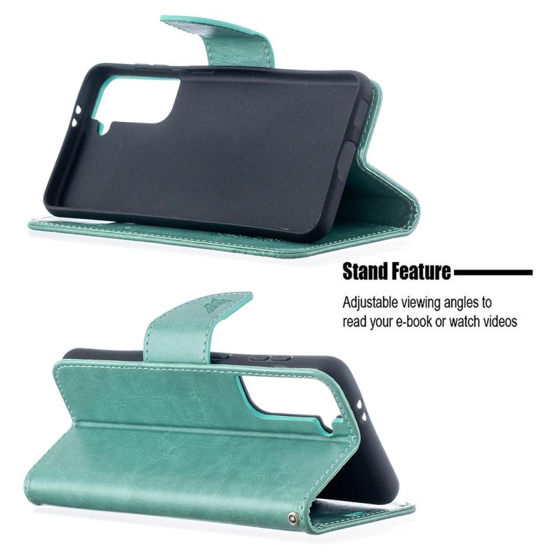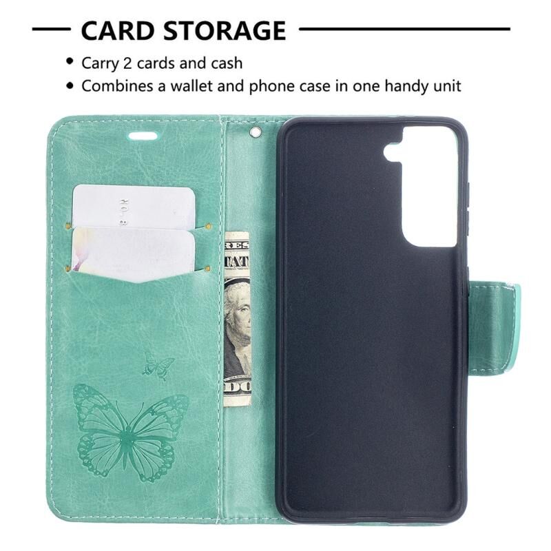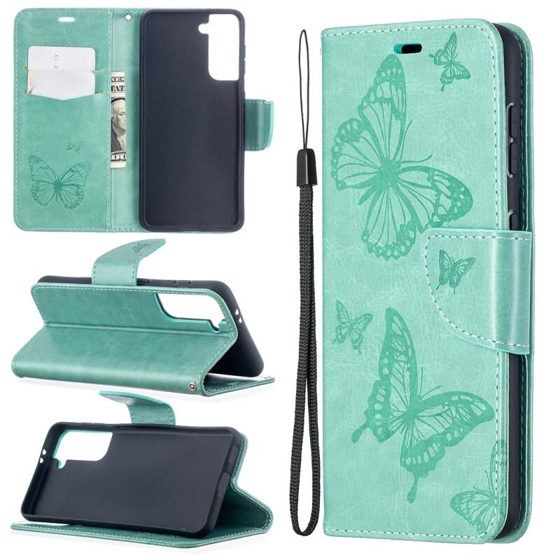 For Samsung Galaxy S21 5G Embossing Two Butterflies Pattern Horizontal Flip PU Leather Case with Holder & Card Slot & Wallet & Lanyard(Green)