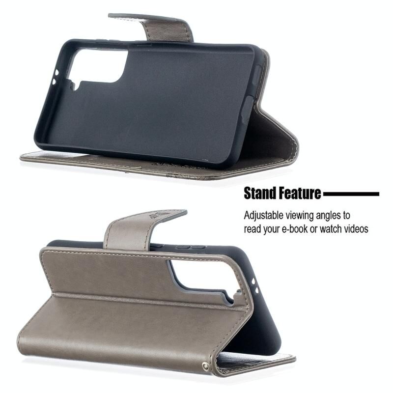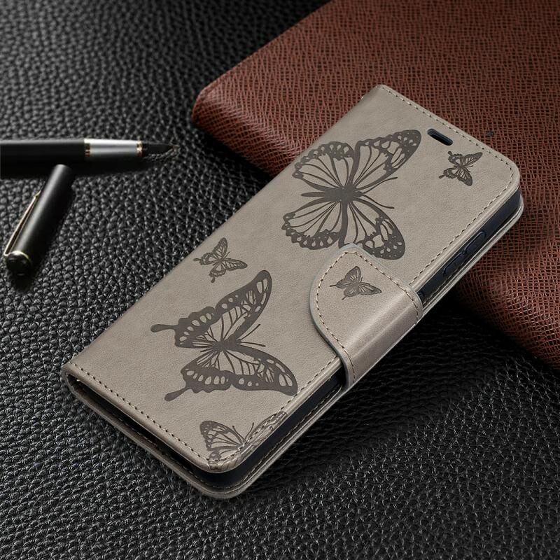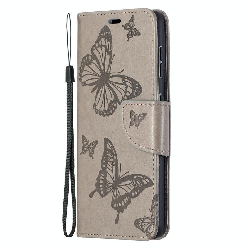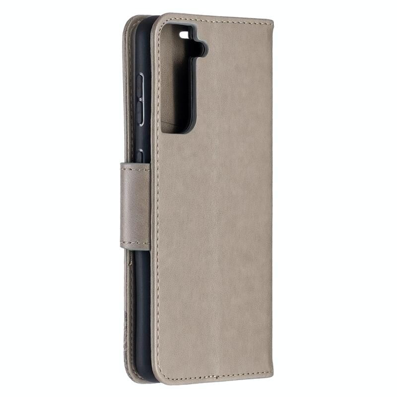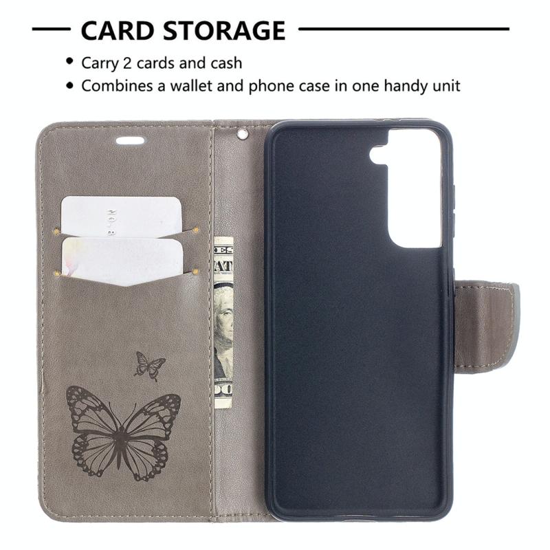 For Samsung Galaxy S21 5G Embossing Two Butterflies Pattern Horizontal Flip PU Leather Case with Holder & Card Slot & Wallet & Lanyard(Grey)