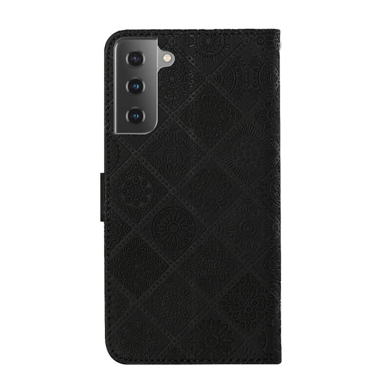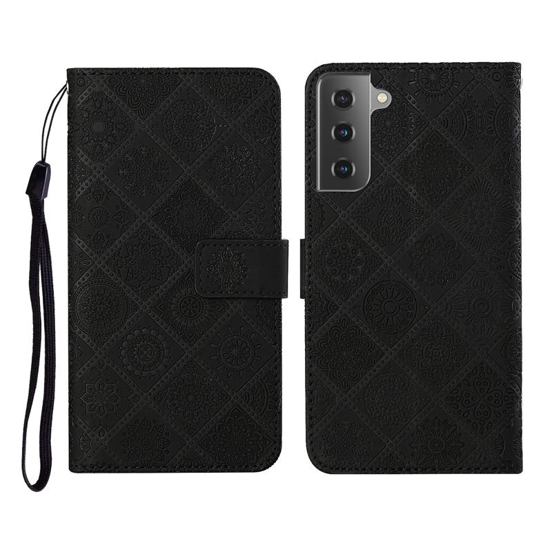 For Samsung Galaxy S21+ 5G Ethnic Style Embossed Pattern Horizontal Flip Leather Case with Holder & Card Slots & Wallet & Lanyard(Black)