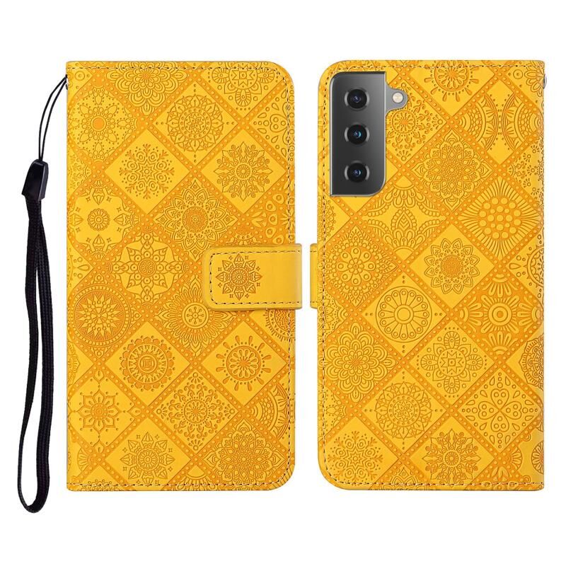 For Samsung Galaxy S21+ 5G Ethnic Style Embossed Pattern Horizontal Flip Leather Case with Holder & Card Slots & Wallet & Lanyard(Yellow)