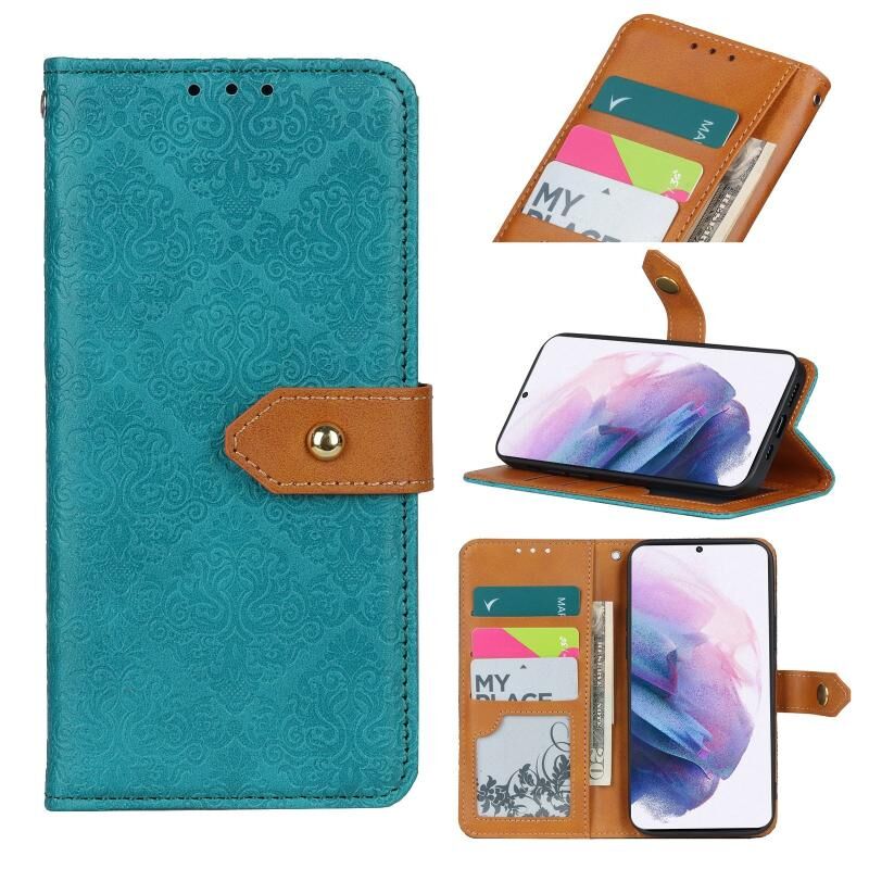 Για Samsung Galaxy S21+ 5G Ευρωπαϊκή Floral ανάγλυφο χαλκό πόρπη οριζόντια Flip PU δέρμα υπόθεση με θήκη & υποδοχές για κάρτες & πορτοφόλι & κορνίζα φωτογραφιών (μπλε)