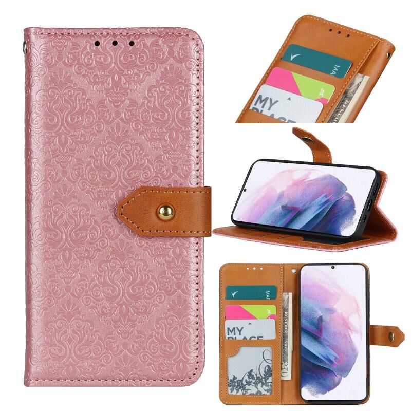 Για Samsung Galaxy S21+ 5G Ευρωπαϊκή Floral ανάγλυφο χαλκό πόρπη οριζόντια Flip PU δέρμα υπόθεση με θήκη & υποδοχές για κάρτες & πορτοφόλι & κορνίζα φωτογραφιών (ροζ)