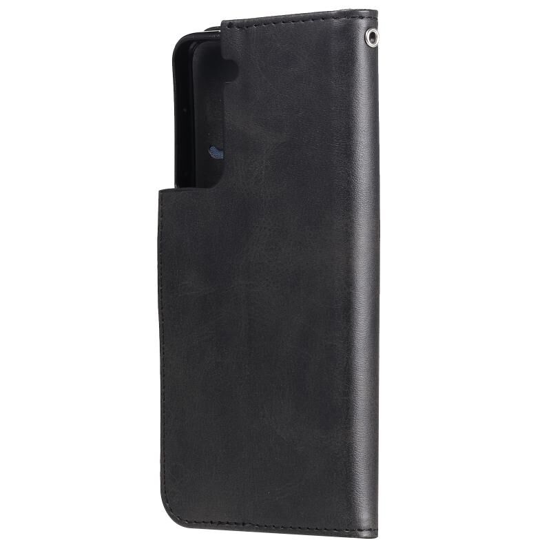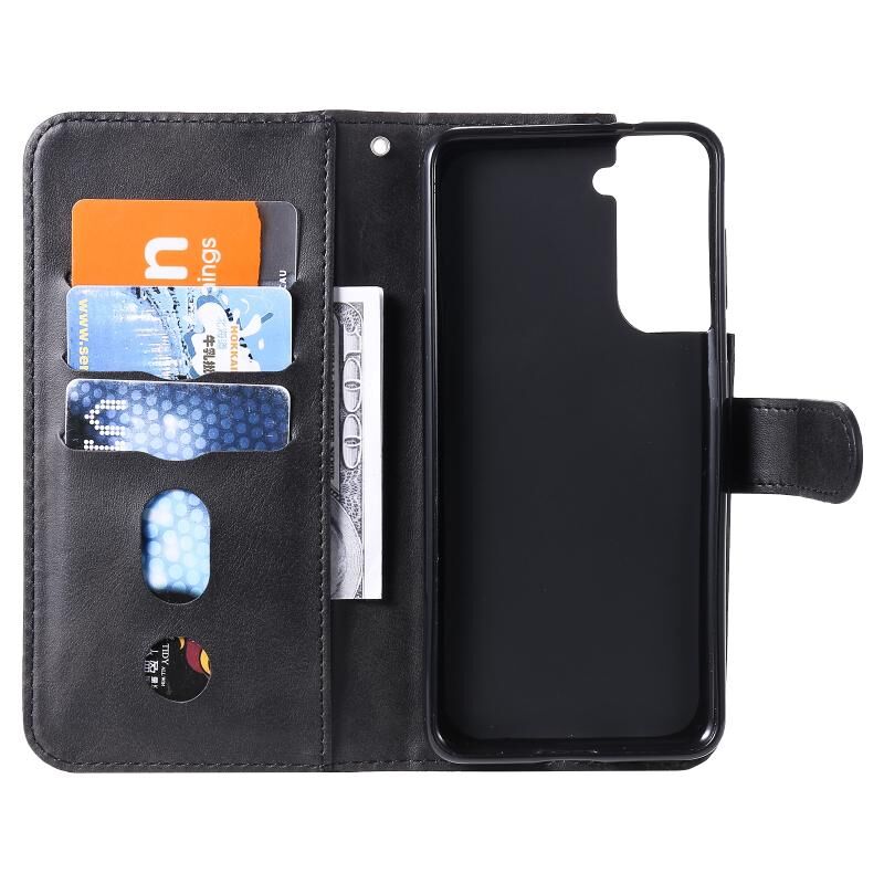 Για Samsung Galaxy S21 5G Μόδα μοσχάρι υφή φερμουάρ οριζόντια Flip δερμάτινη θήκη με θήκη & υποδοχές για κάρτες & πορτοφόλι (Μαύρο)