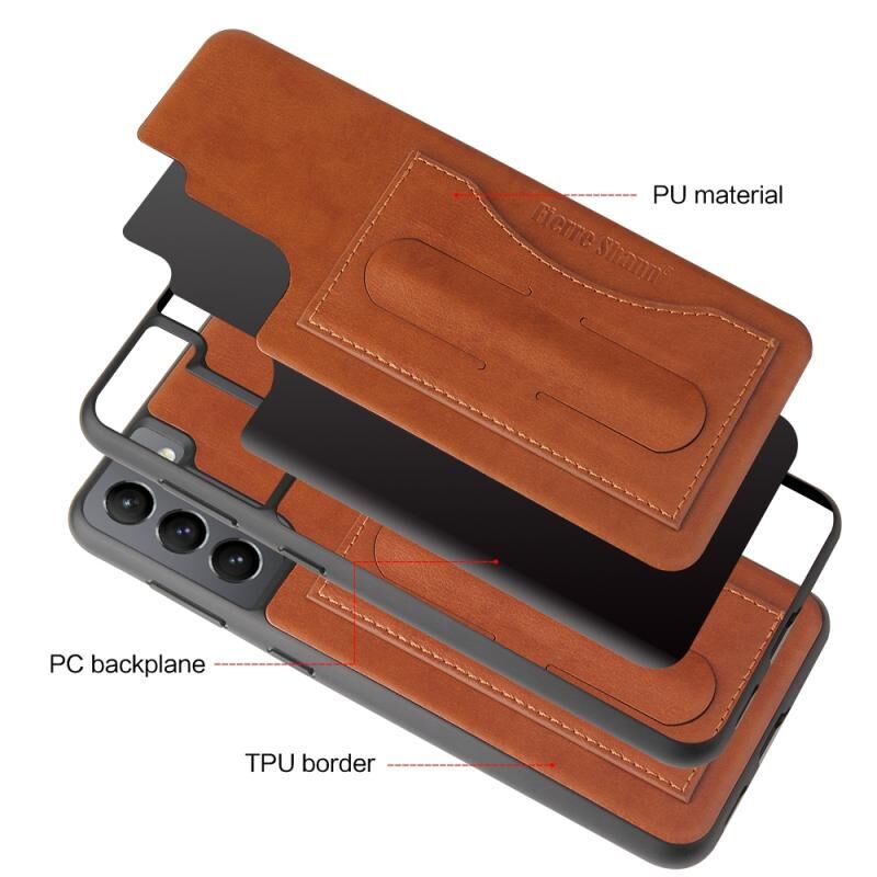 Θήκη δέρματος πλήρους κάλυψης για Samsung Galaxy S21+ 5G Fierre Shann με βάση & θήκη για κάρτες (Μαύρο) (FIERRE SHANN)