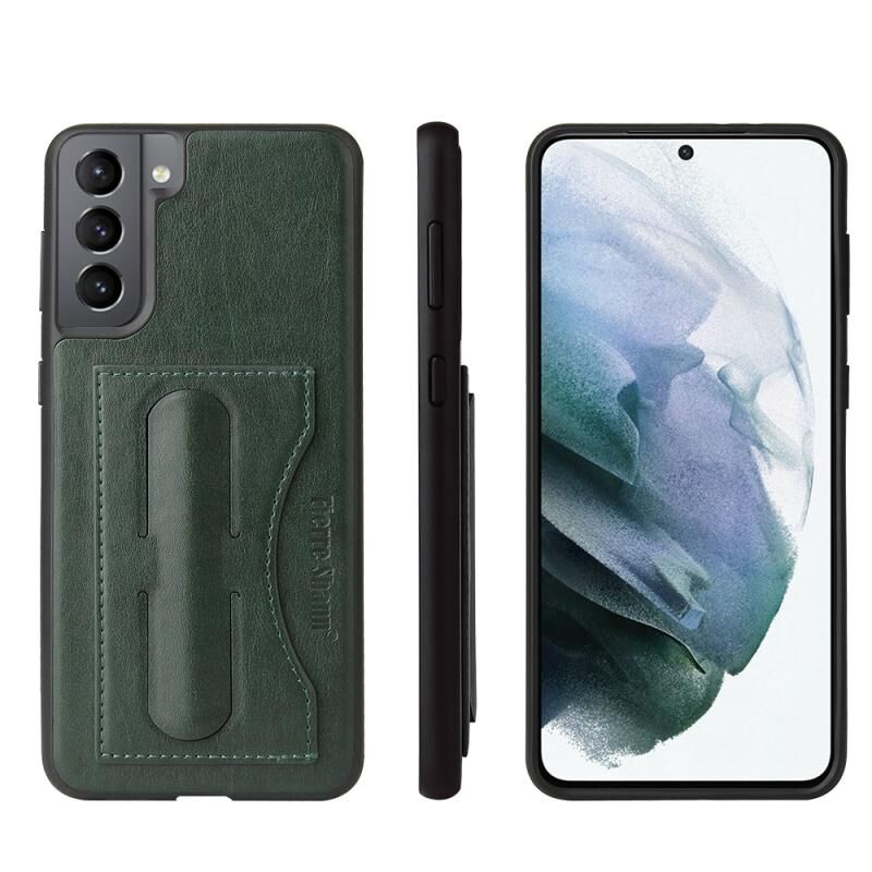 Θήκη δέρματος πλήρους κάλυψης για Samsung Galaxy S21+ 5G Fierre Shann με βάση & θήκη για κάρτες (Μαύρο) (FIERRE SHANN)