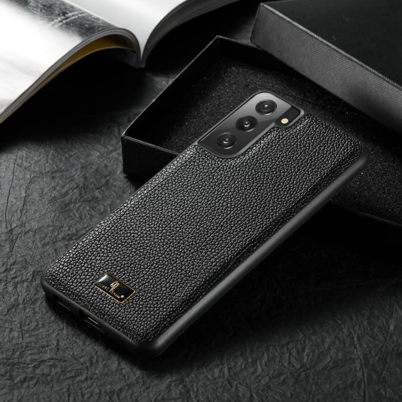For Samsung Galaxy S21+ 5G Fierre Shann Leather Texture Phone Back Cover Case(Lychee Black) (FIERRE SHANN)
