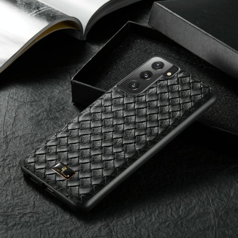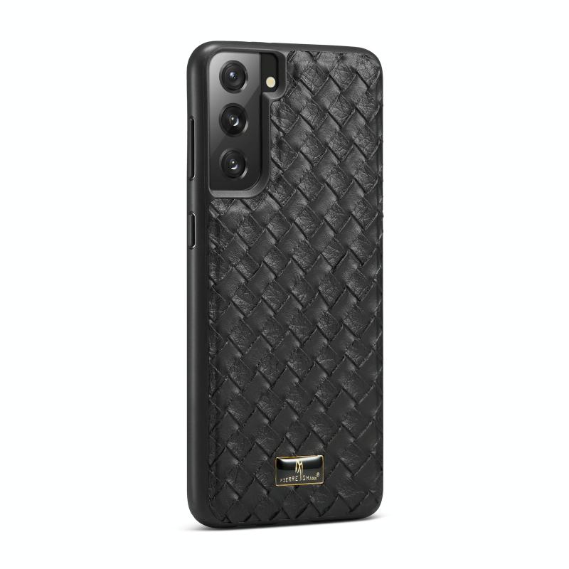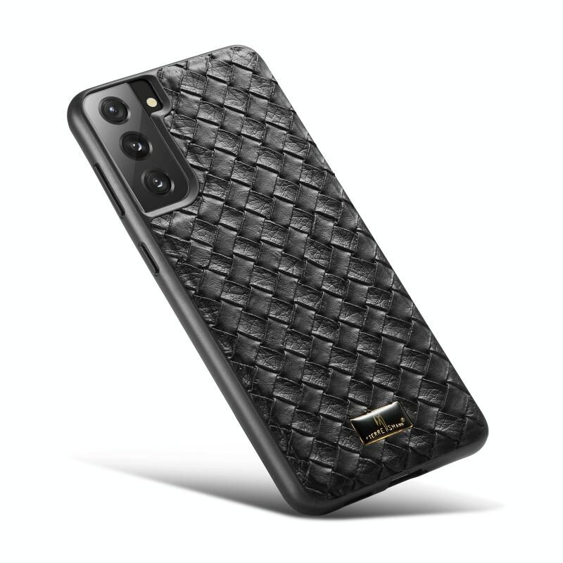 For Samsung Galaxy S21+ 5G Fierre Shann Leather Texture Phone Back Cover Case(Woven Black) (FIERRE SHANN)