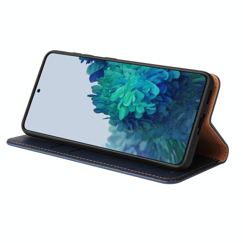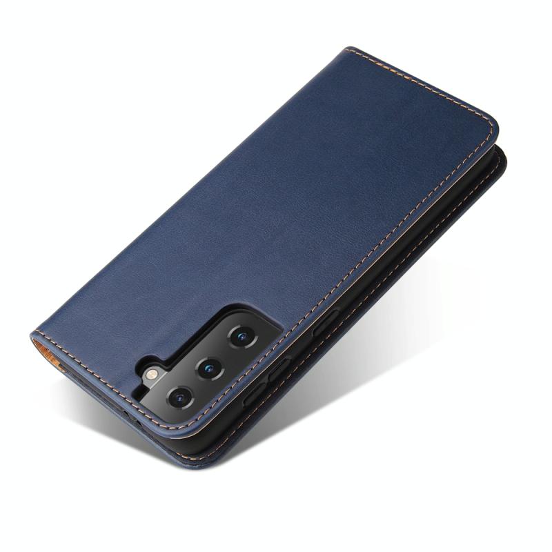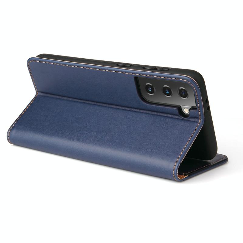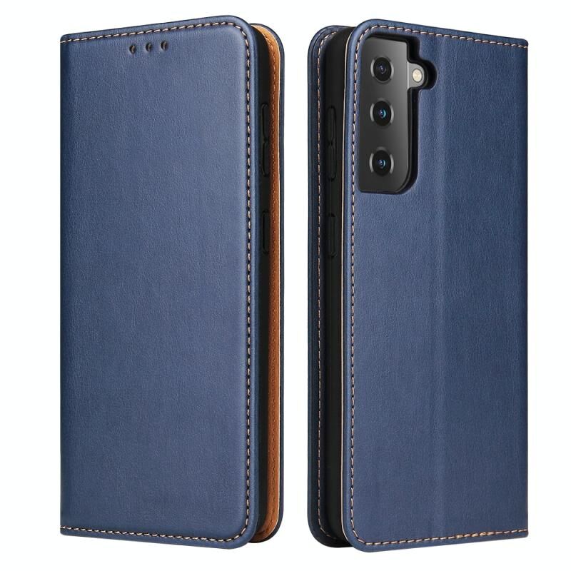 For Samsung Galaxy S21+ 5G Fierre Shann PU Genuine Leather Texture Horizontal Flip Leather Case with Holder & Card Slots & Wallet(Blue) (FIERRE SHANN)