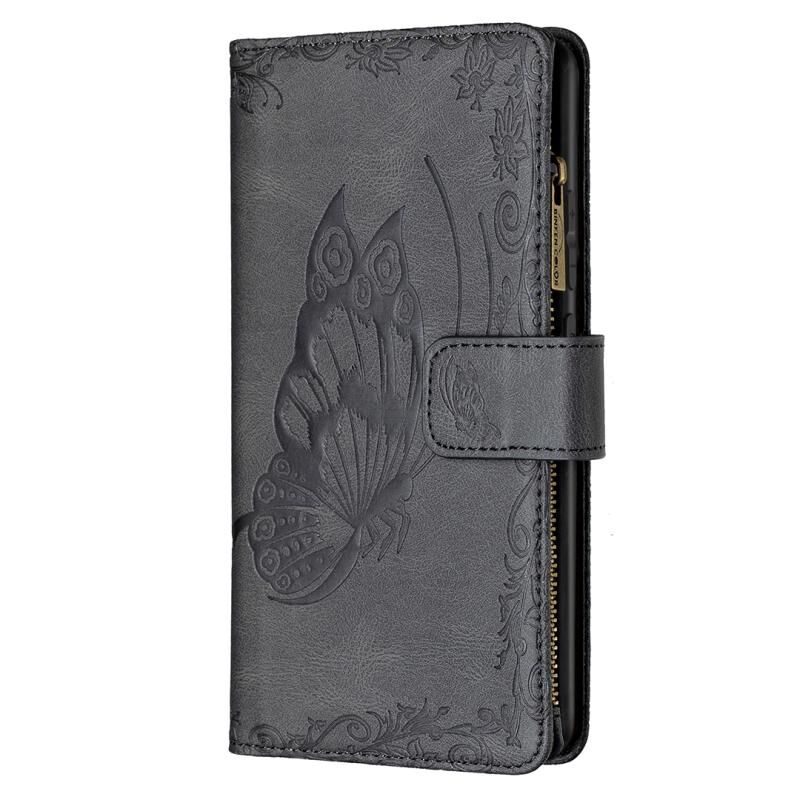 Για Samsung Galaxy S21 5G Flying πεταλούδα ανάγλυφο μοτίβο φερμουάρ οριζόντια Flip δερμάτινη θήκη με κάτοχο & υποδοχές για κάρτες & πορτοφόλι (μαύρο)