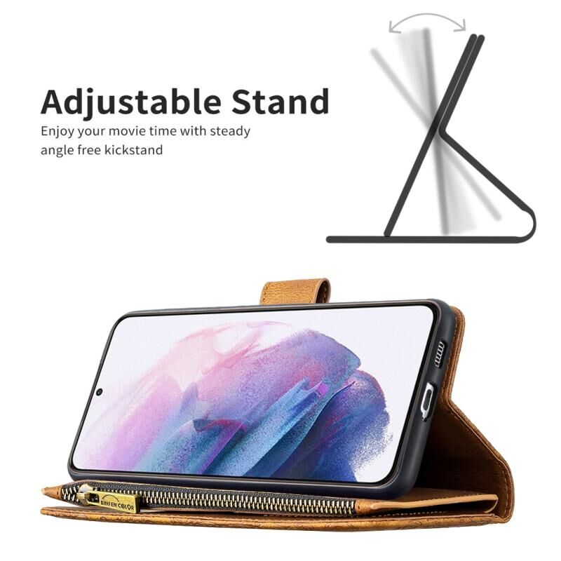 Για Samsung Galaxy S21+ 5G Flying πεταλούδα ανάγλυφο μοτίβο φερμουάρ οριζόντια Flip δερμάτινη θήκη με κάτοχο & υποδοχές για κάρτες & πορτοφόλι (καφέ)