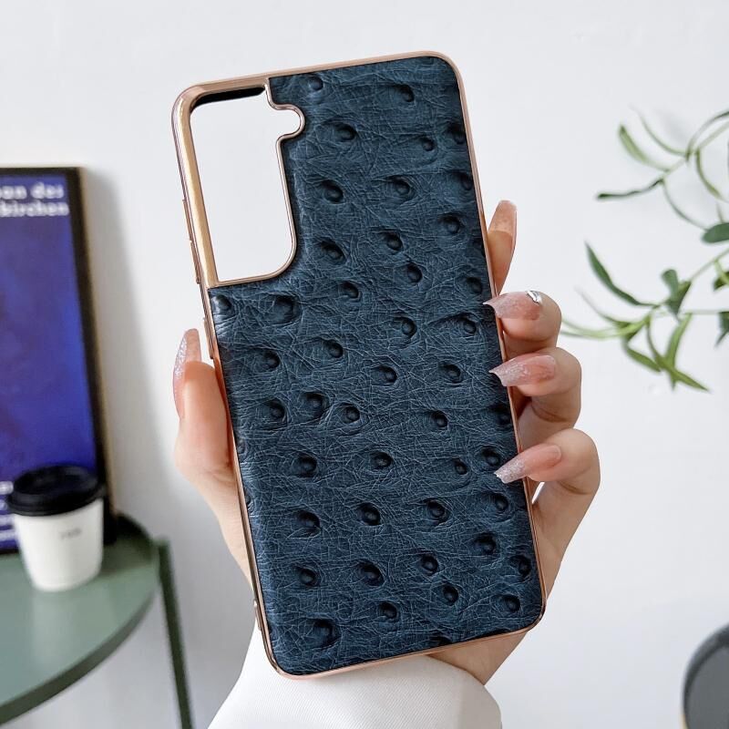 Θήκη τηλεφώνου Samsung Galaxy S21+ 5G από γνήσιο δέρμα με υφή στρουθοκάμπου, σειρά Nano Electroplating (Καφέ)