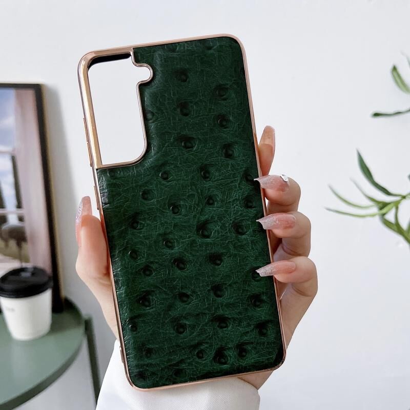 Θήκη τηλεφώνου Samsung Galaxy S21 5G από γνήσιο δέρμα με υφή στρουθοκάμπου, σειρά Nano Electroplating (Καφέ)