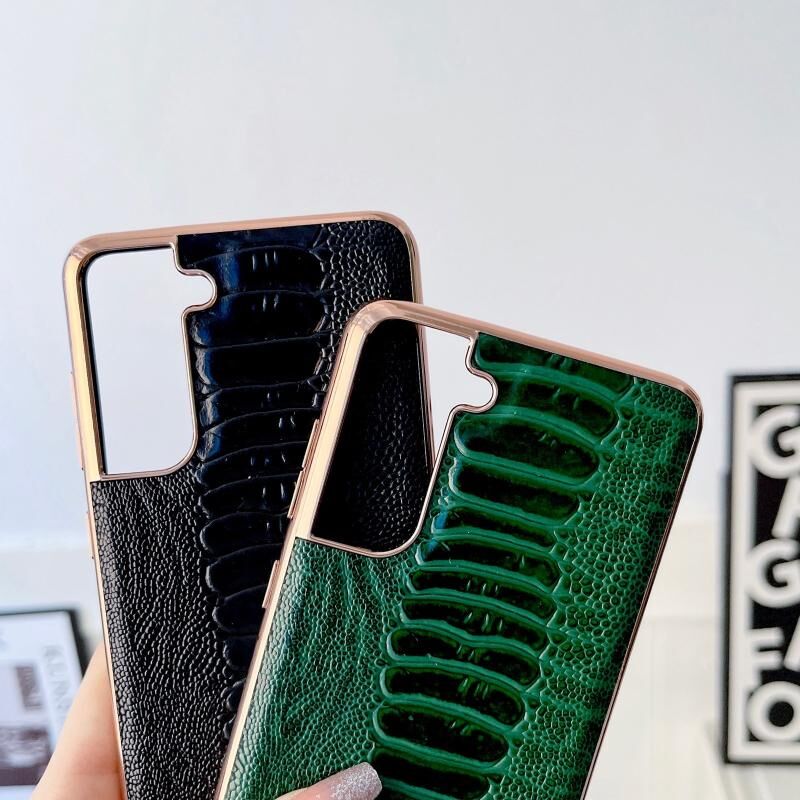 Θήκη τηλεφώνου Samsung Galaxy S21+ 5G από γνήσιο δέρμα, σειρά Weilai, νανο-επίχρυση (Κόκκινο)