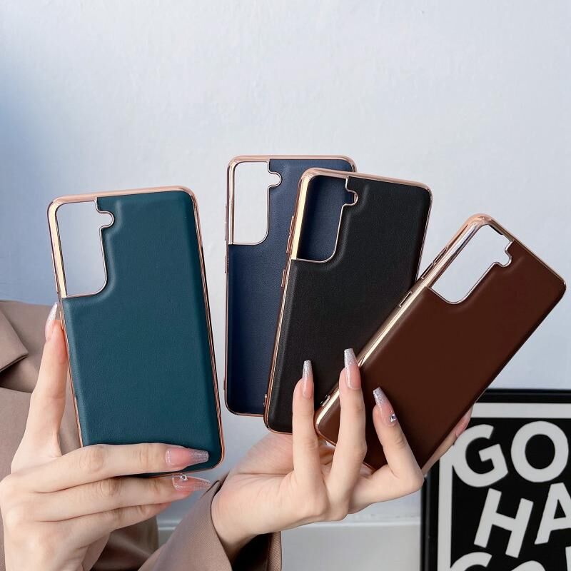 Θήκη τηλεφώνου Samsung Galaxy S21+ 5G από γνήσιο δέρμα, σειρά Xiaoya, νανο-επίχρυση (Πράσινο)