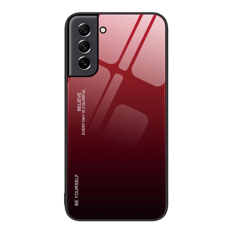 Για Samsung Galaxy S21 5G Βαθμιδωτό Χρώμα Γυάλινη Θήκη (Κόκκινο Μαύρο)