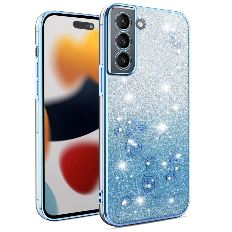 For Samsung Galaxy S21 5G Gradient Glitter Flower All-inclusive Phone Case(Blue)